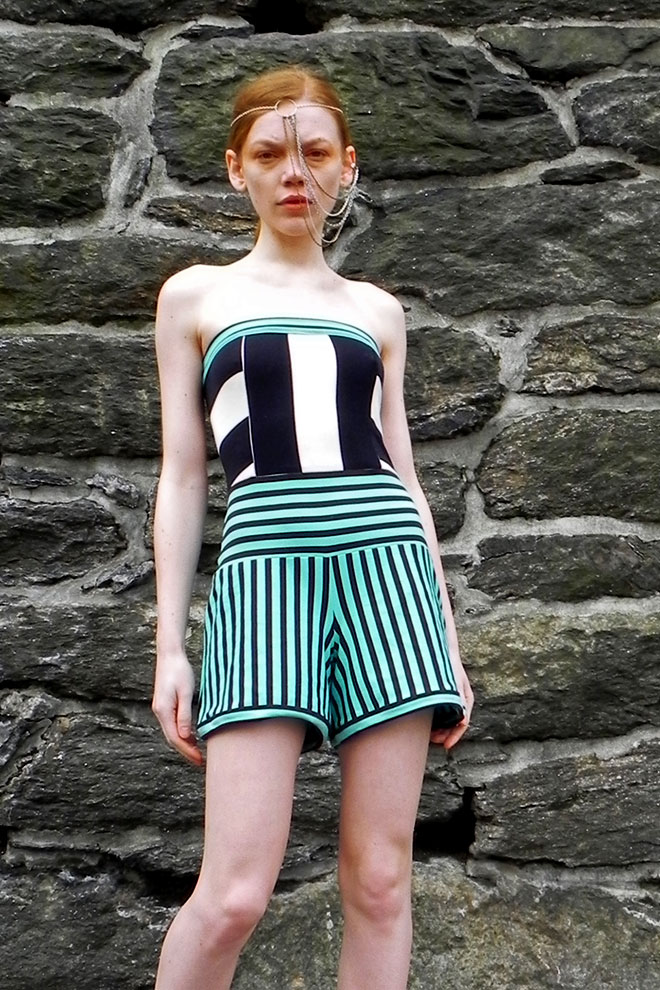 Contains: Super cute chocolate mint and black and white striped strapless jumper.