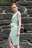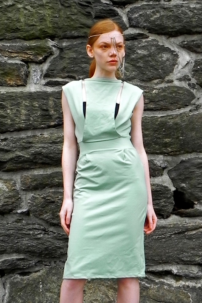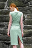 Contains: Rayon and cotton blend knit dress with slit detailing in top and side